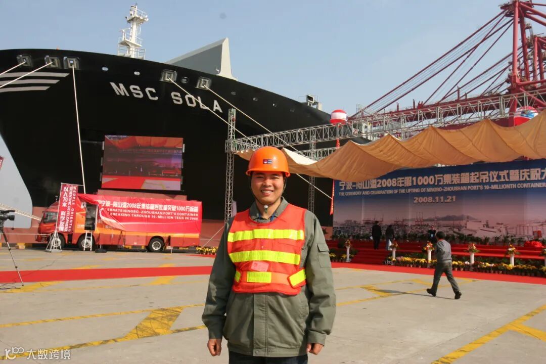 2008年我刚参加工作,正好赶上宁波舟山港年集装箱吞吐量突破“1000万箱”。那时候我用一部老式诺基亚,手忙脚乱地请同事帮我拍下了激动又青涩的样子。现在想想,那会儿的通讯设备和现在比,真是一个天一个地。