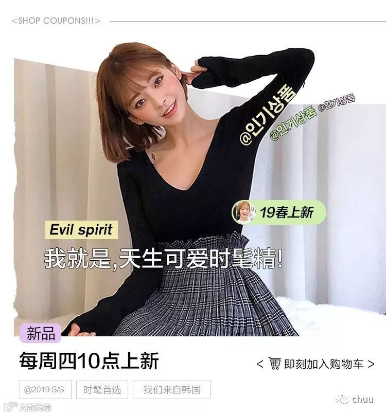 chuu,韩国本土网红潮流时尚品牌。2012年创立于韩国首尔。甜辣,轻运动,高调张扬的自我穿搭方式。