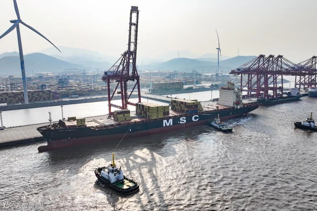 1月8日下午,地中海航运澳洲直航新航线首班船“地中海杰西尼亚”轮,平稳靠泊宁波舟山港穿山港区集装箱码头,意味着宁波舟山港迎来2026年首条外贸新航线,进一步拓展了至大洋洲的高效物流通道。