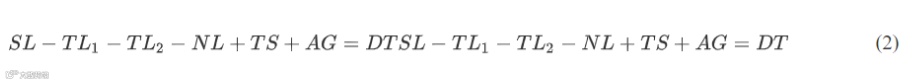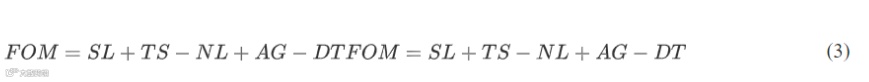 式中:SL为主动发射声源级;TL1为声源到目标的声传播损失;TL2为目标到接收阵的声传播损失;TS为目标强度;NL为背景噪声级;AG为声呐处理增益;DT为声呐检测阈。可以得到主动双基地声呐的声呐优质因数: