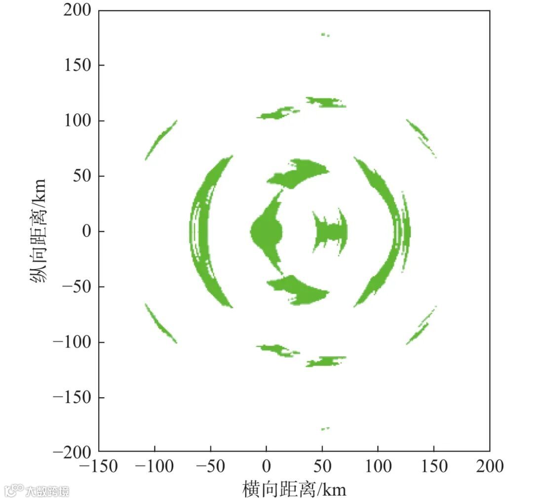 图10 被动单基地声呐探测范围(FOM = 80 dB)