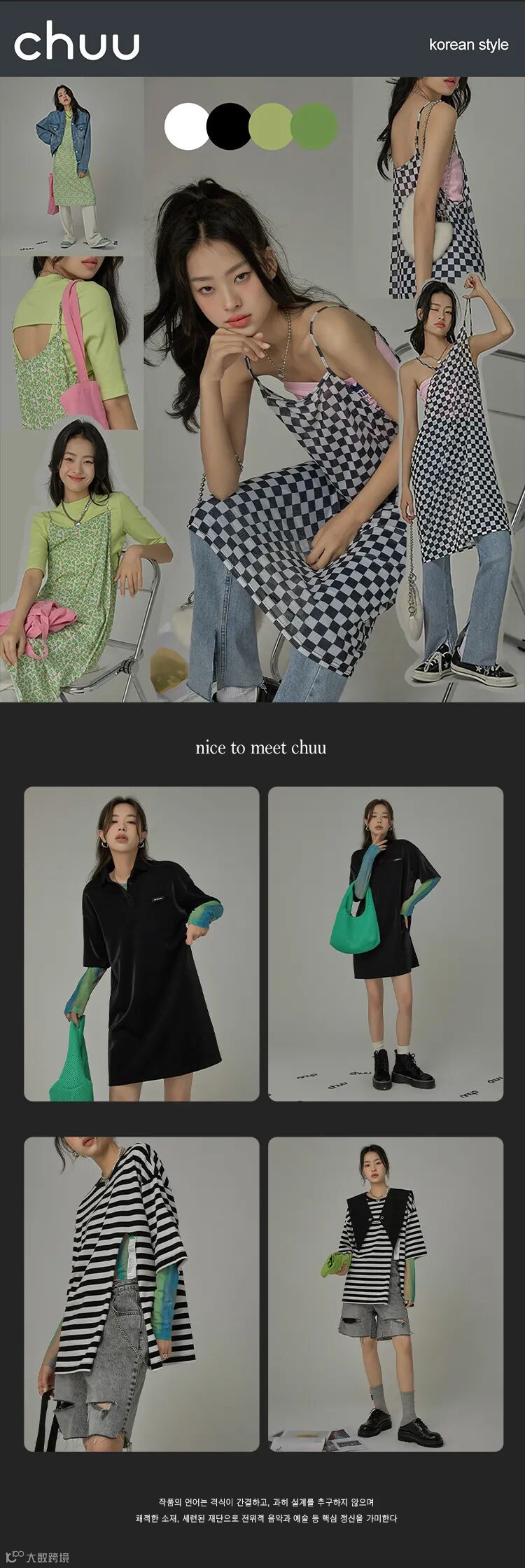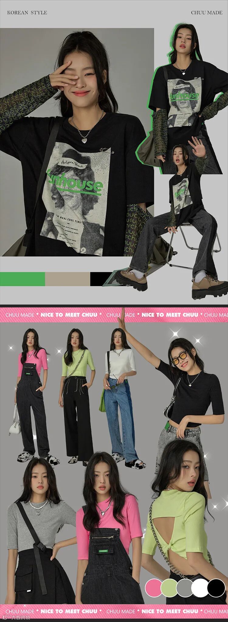 chuu,韩国本土网红潮流时尚品牌。2012年创立于韩国首尔。甜辣,轻运动,高调张扬的自我穿搭方式。