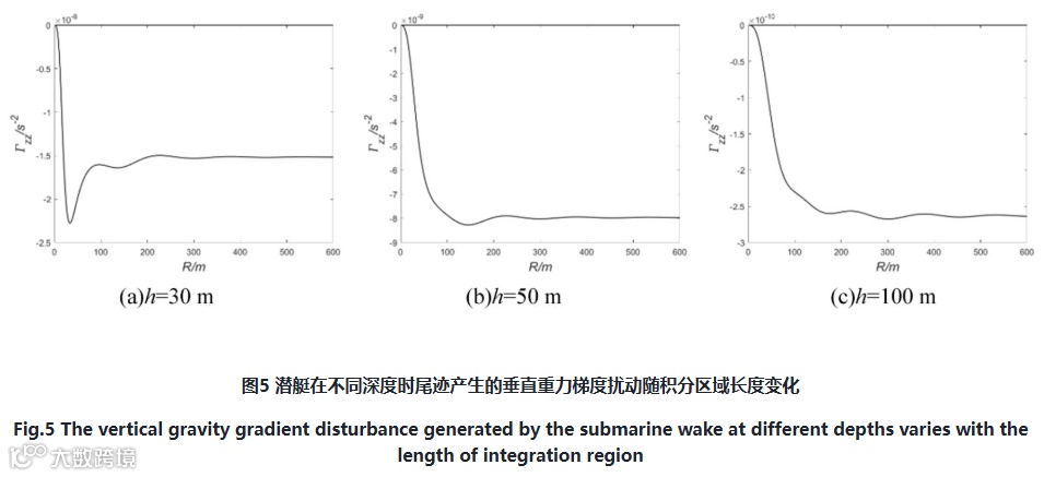 (1)潜艇在同一深度航行时,随着速度增加,尾迹对测量点的垂直重力梯度影响随之增大;潜艇在同一速度航行时,随着下潜深