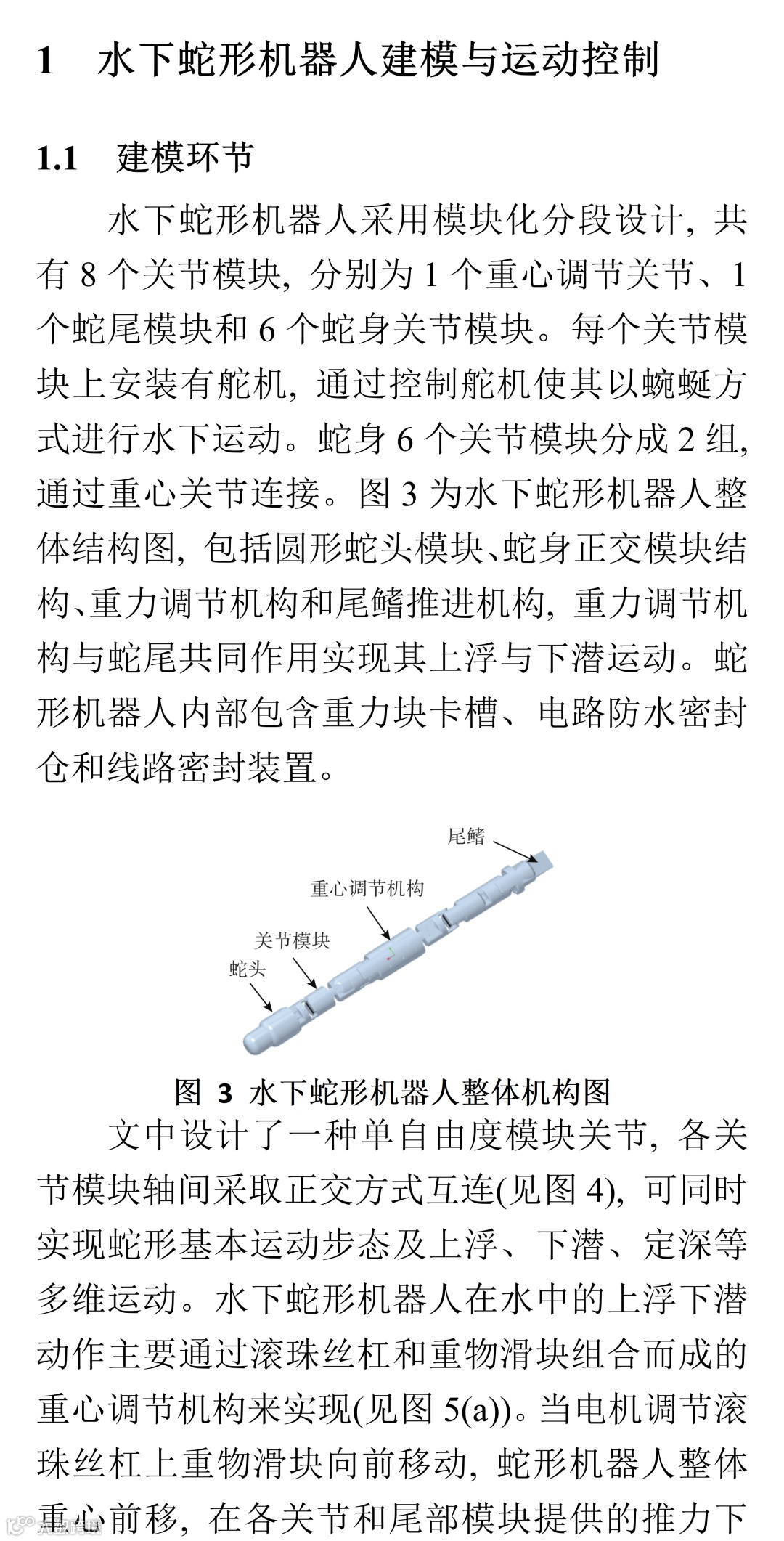水下管道作为水源保障、能源输送的重要通道, 需要定期检查维护[1-2]。目前, 对水下管道检查主要有2种方式: 一是人工作业, 由于水下作业环境复杂, 人员伤亡事故时有发生; 二是采取遥控水下航行器和自主水下航行器等装备进行作业[3], 但这些水下航行器普遍存在体积大、设备重和灵活性差等缺点, 难以进入水下狭窄管道进行检查作业。为解决以上难题, 水下蛇形机器人因具有形状多变、机动性强和灵活性高等优点[4-8]被广泛关注, 为水下管道检查作业提供了新思路。