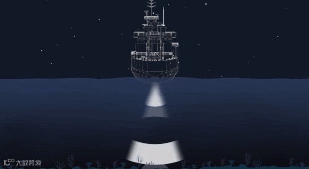 通常在发射声波后,声波就会在水中进行传播,当遇到鱼群时,声波就会反射回来,形成实时动态数据,从而进行计数、诱鱼、捕鱼等。