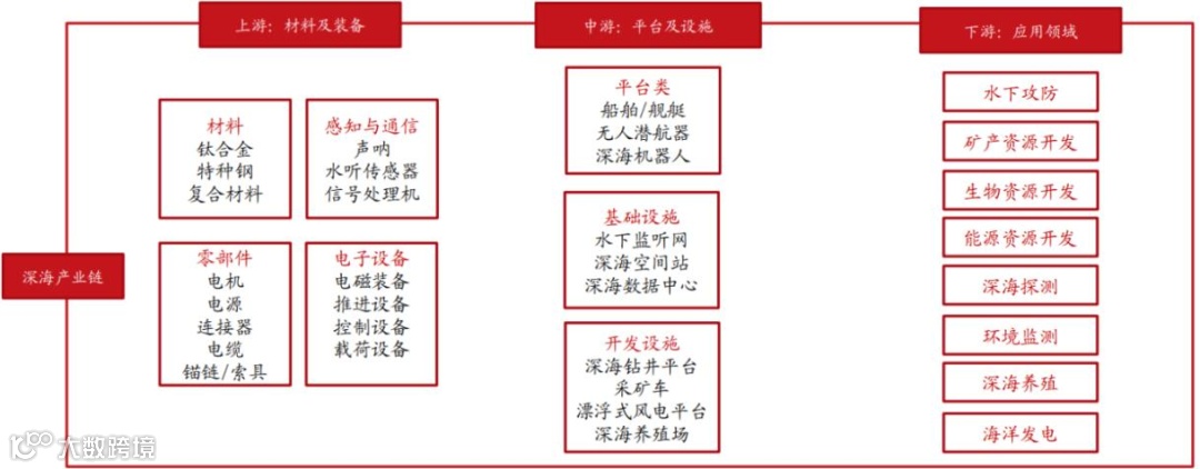 深海科技产业链可分为上游—中游—下游三大环节: