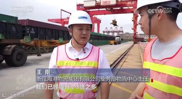 浙江海港物流集团有限公司业务部物流中心主任 王刚:随着这几年的发展,义乌海铁联运的占比,我们已经提升了3倍之多,有效缓解了道路交通运输压力。