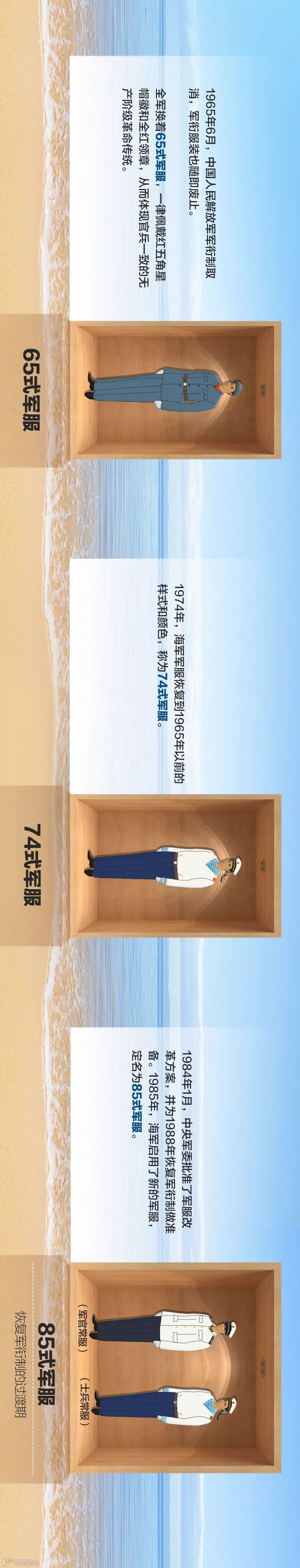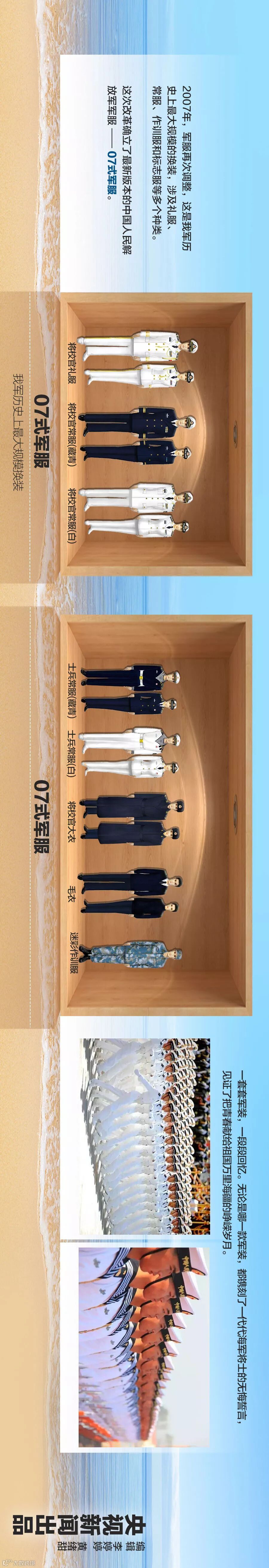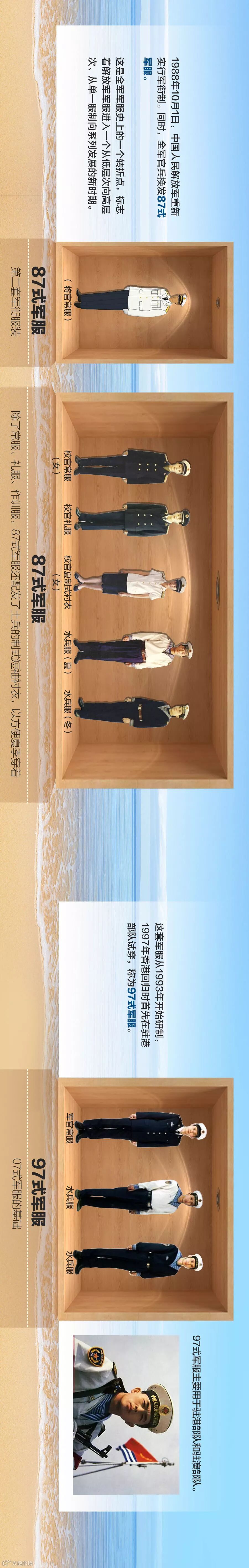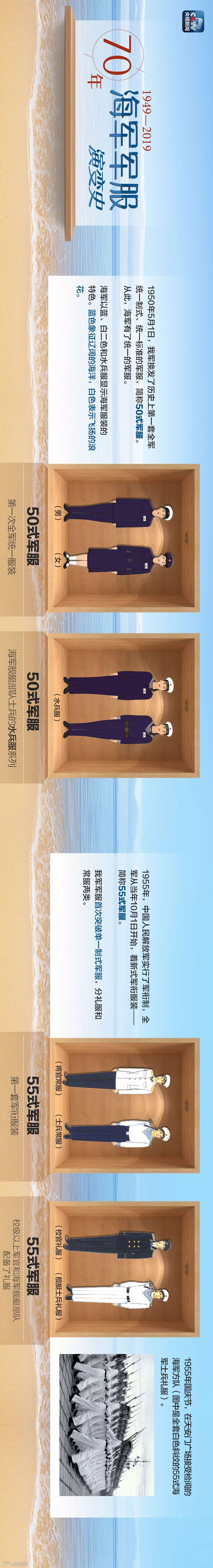 70年以来,人民海军的军服也经历了数次样式的变迁,其演进过程如同一幅壮丽的历史画卷,既体现了整个时代审美观念的变化,也在某种程度上展示了中国人民军队的成长史和中国社会经济的发展史。下面,一张图回顾人民海军军服发展史,领略一下不同年代各式军服的风采!