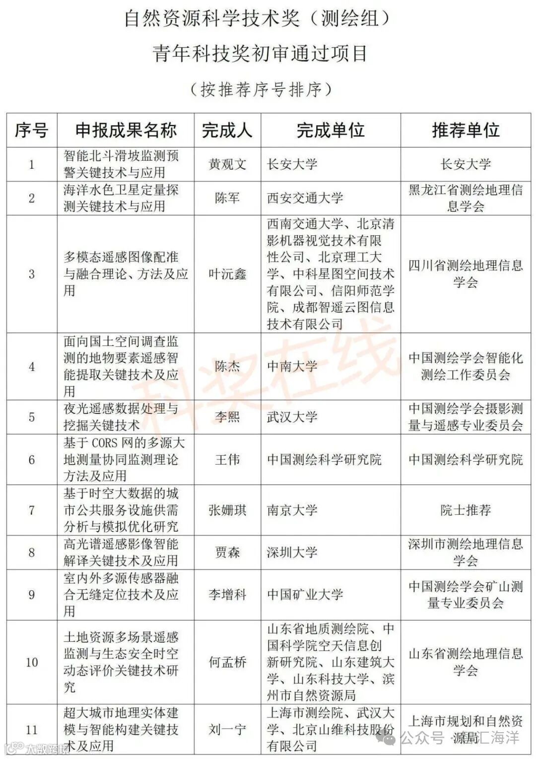 1、2024年自然资源科技奖(测绘组)