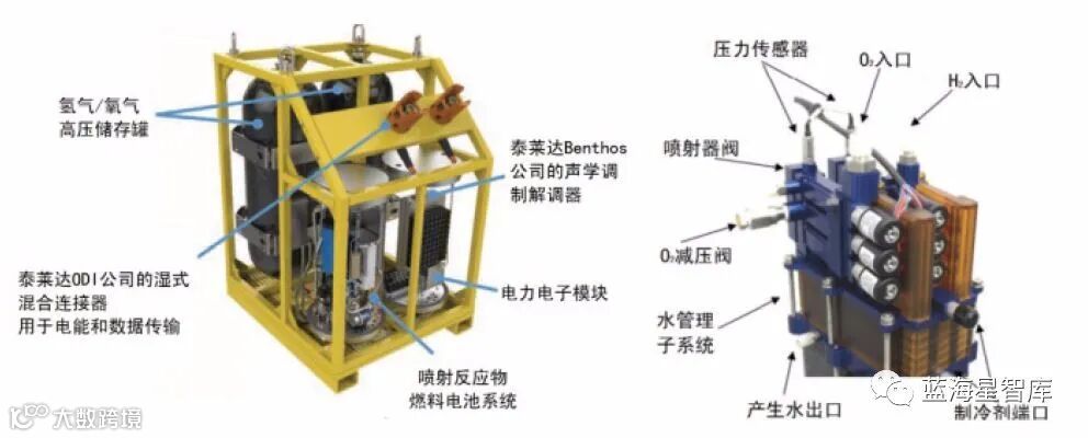 图2 左为“水下悬浮充电节点”模型,右为燃料电池系统结构