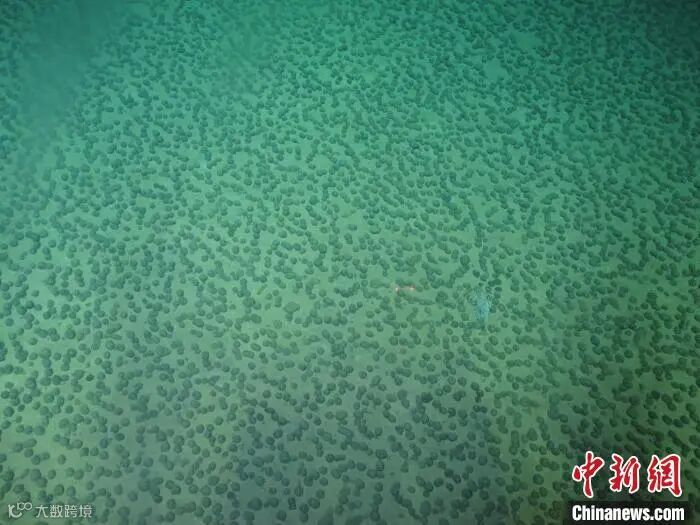本航次在任务海域开展的3次载人深潜科考调查中,对前期新发现的深海多金属结核发育区进行了进一步探查,并扩大了该区的范围。与常规赋存于深海海盆地貌不同,此区域的多金属结核主要分布于海脊地貌,结核丰度较高,形状多为球形,粒径大多在2至5厘米,少数超过10厘米。这一发现或为后续深入探究深海多金属结核形成发育机制提供新的思路和证据。