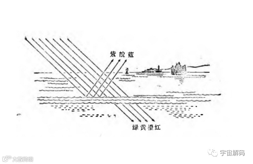 我们的印象里,海洋都是蓝色的,这是因为波长越长的光越容易折射进入海水里,蓝光和紫光的波长比较短,均被海水反射。我们的眼睛对紫光不是很敏感,因此看到的海水颜色是蓝色。