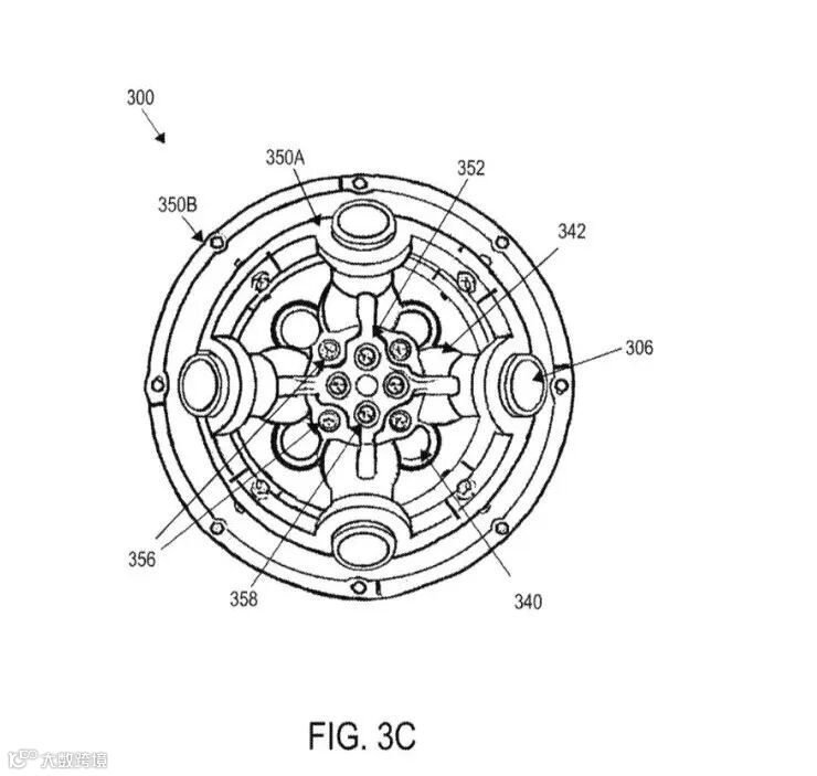 为了增加推进核心的强度,四个固定螺栓穿过所有八个打印推进器管道的偏移和互锁环。这种改动如图3A-3C所述,将推进核心连接和支撑。