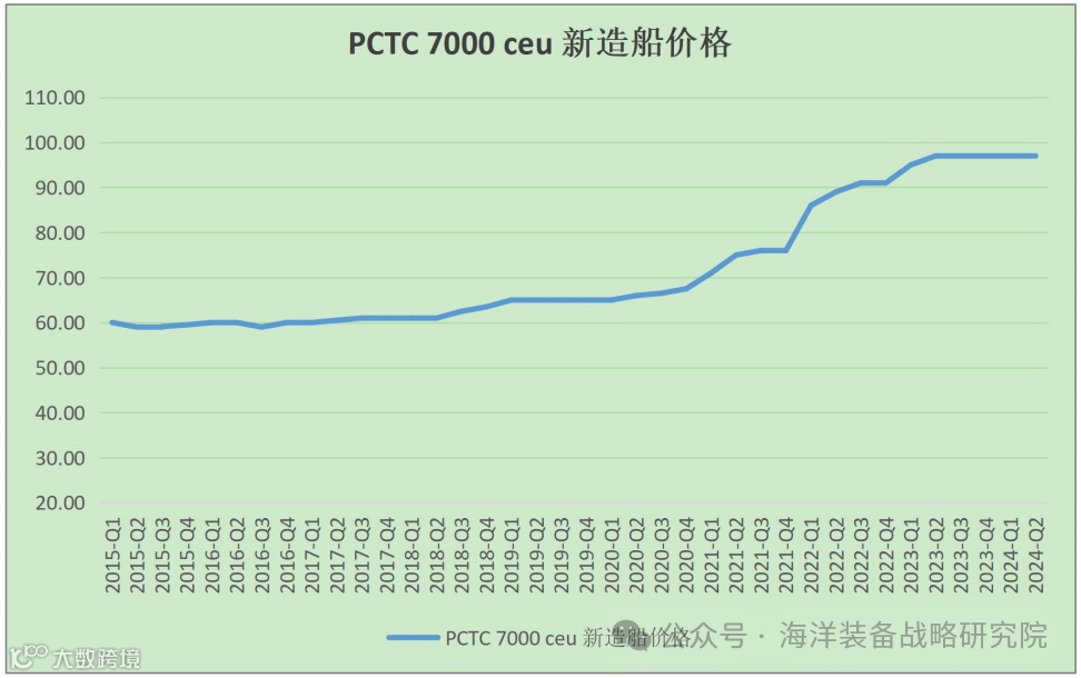 图2. 2015-2024年6月份 PCTC 7000 ceu 新造船价格变化趋势图(单位:百万美元)