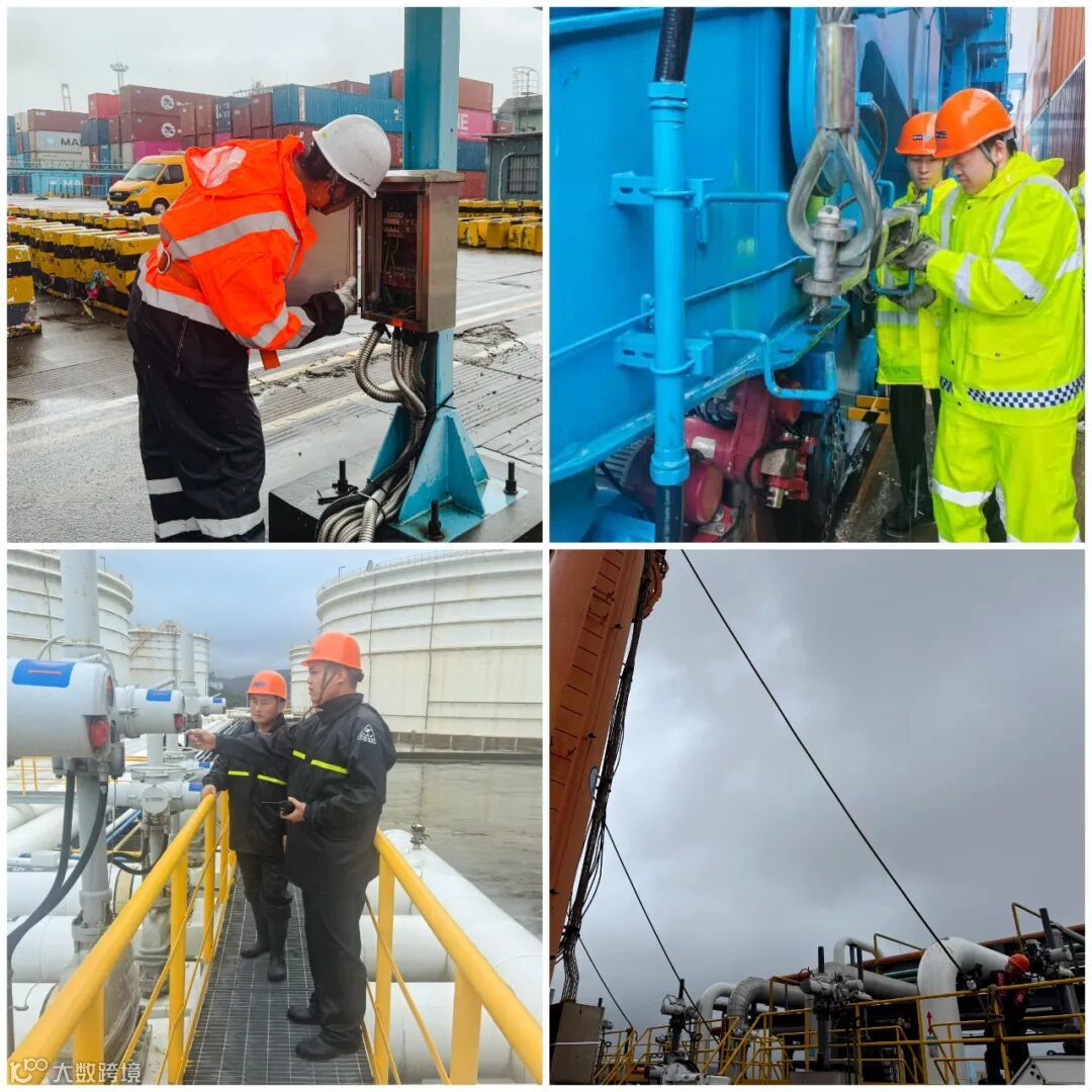 大型机械是检查的重中之重。巡查人员仔细核查岸边桥吊、场桥、输油臂等重型设备的防风锚定装置是否牢固,确认防风拉索、制动器等关键部件状态完好,严防设备在后续风雨中发生位移或倾覆。同时,对设备电气系统进行防水防潮复查,确保线路无浸水、接口无松动,保障恢复供电后的运行安全。