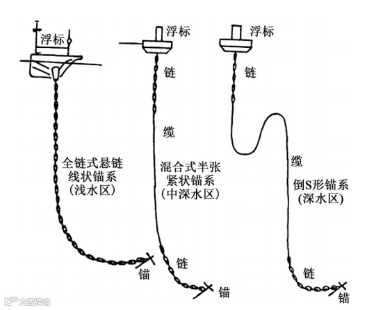按照锚泊方式,浮标可分为锚系型和漂流型,漂流型又可分为表面漂流浮标与中性漂流浮标。锚系型浮标通过锚系连接海底与浮标体,锚系克服海流作用将浮标限定于一定位置范围内工作,主要用于获取海洋特定位置长时间序列水文和气象变化实况信息,特别适合对关键海区布设长期观测网从而对海洋进行监测和研究。漂流浮标没有锚系的限制,可以在海洋中随风、波浪、洋流作用自由漂移或升沉,在运动过程中收集大范围的海洋表层、次表层环境数据。