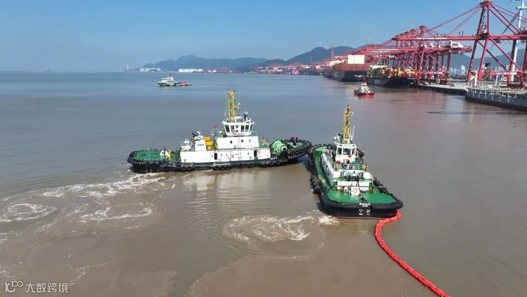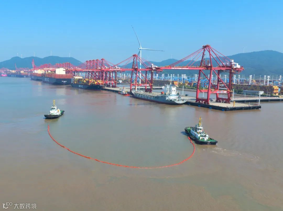 6月18日下午,宁波港域联防体穿山片区润滑油泄漏应急综合演练在宁波舟山港穿山港区集装箱码头1号泊位前沿水域成功举行。