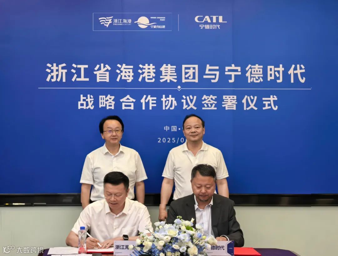 6月25日,浙江省海港集团与宁德时代在福建宁德签署战略合作协议。双方将共同探索并实践港口物流领域的“产业新能源化”发展路径,合力打造港口综合零碳解决方案。