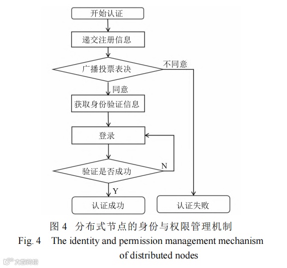 在身份与权限管理机制中,还设置了对不可信节点的许可撤销机制。若某节点遭遇恶意攻击或被篡改,则其拥有的认证信息将会改变,也无法正常登录联盟链网络。若多次登录失败,网络将自动判别该节点为不可信节点,并通过追溯机制注销其原有的认证信息。