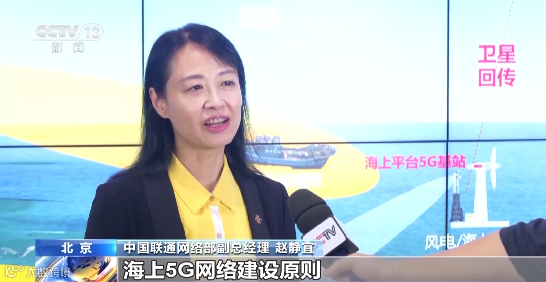 中国联通网络部副总经理 赵静宜:我们遵循“站得越高、看得越远”的海上5G网络建设原则,在有沿海山体地理优势的地区,优先建设高海拔的5G基站;在沿海平原地带,综合陆地和海上平台、岛屿设计多级接力覆盖方案。在海上,我们研发了5G+微波、5G+卫星的融合方案,有效保障了海上5G网络的按需部署能力。