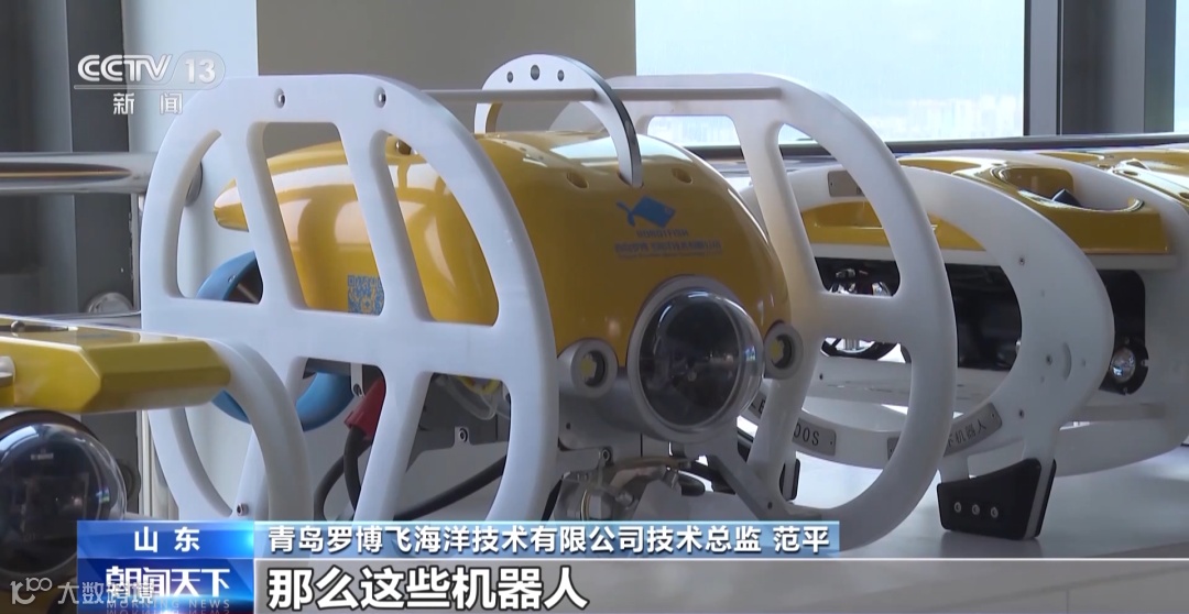 青岛罗博飞海洋技术有限公司技术总监 范平:我们的水下机器人产品有小的、中等的、大型的,适用不同的海域,这些机器人在水下拍摄的视频信息,都可以通过它的线缆传递到水面。数据可以直接通过5G网络传回到陆地,然后在数据中心进行自动化的识别和数据的分析。