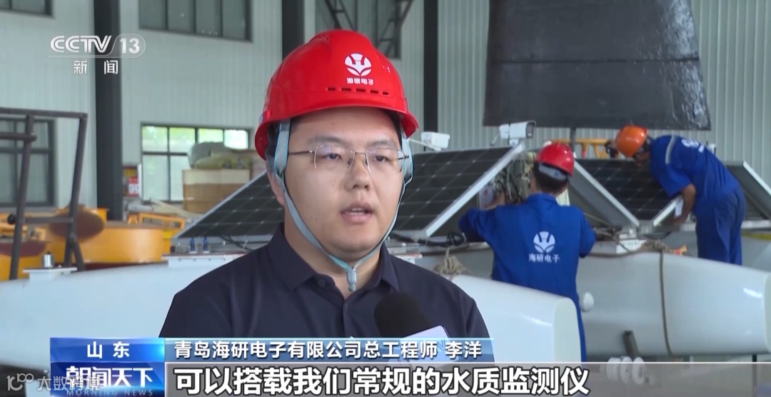 记者来到青岛的一家生产传统海上浮标的企业时,正好赶上他们新研发的海上无人观测帆船组装完成。它不仅可以用风帆来提供航行的动力,顶部的太阳能板,还可以给多个海洋环境监测设备供电,在海上联上5G网络,可以实现海洋环境的智能化监控。
