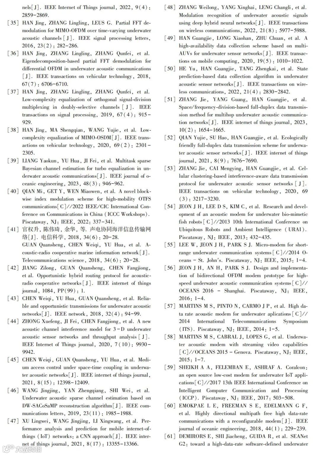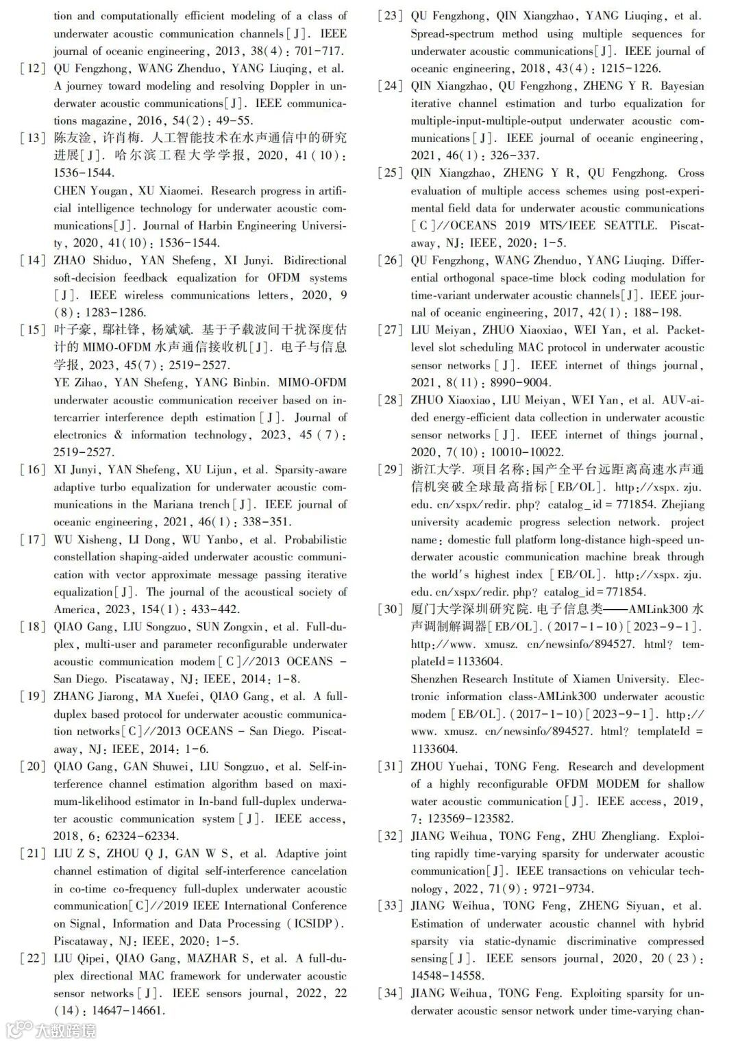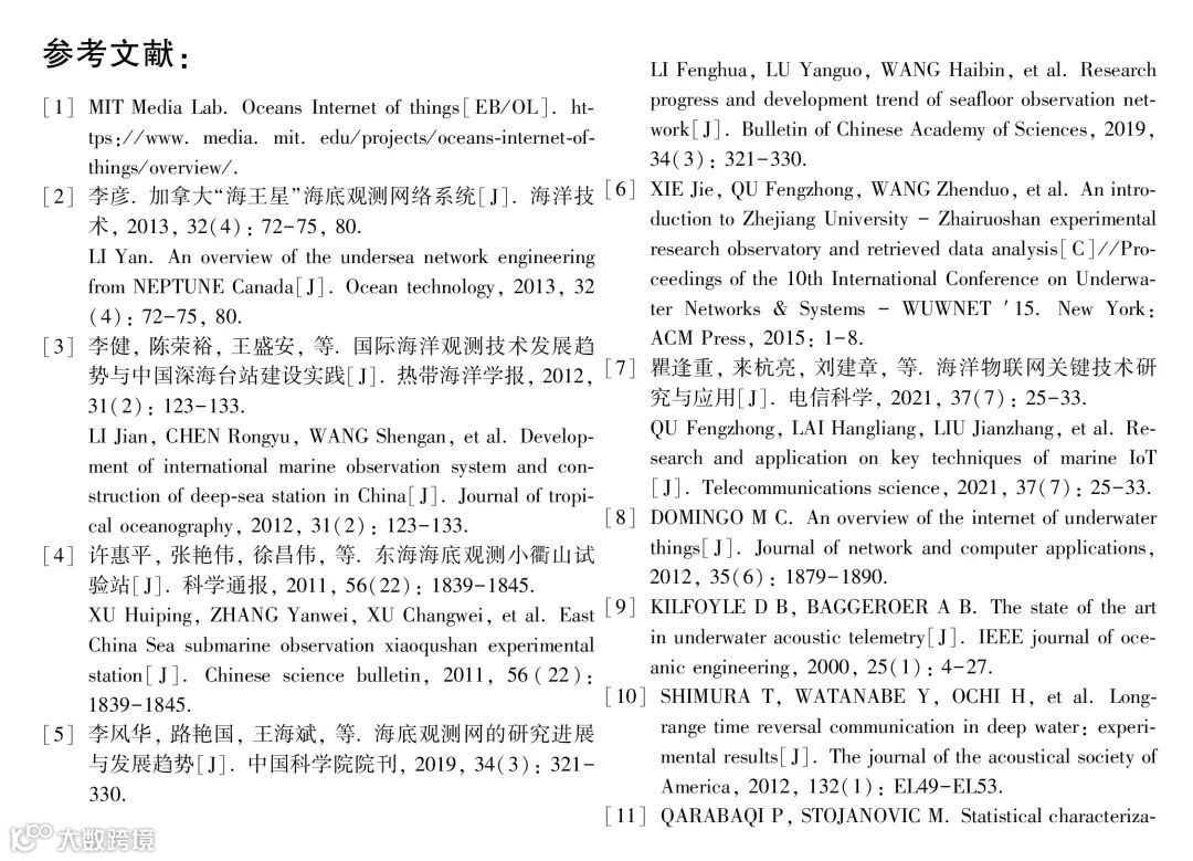 关键词 :海底观测网; 海洋监测; 海洋物联网; 水声通信技术; 水声通信机; 水声传感器网络; 正交频分复用; 通 信速率; 水声信道