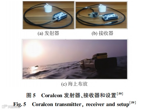 Sheikh 等[59]开发了如图 5 所示的开源低成本水下物联网水声通信机 Coralcon,它可以通过 I2C、SPI、USB 和串行等接口与数据收集设备和传感器连接。水声通信机 Coralcon 的成本约为 140 美元,而市面水声通信机的价格往往高于 1 000 美元。红海试验表明,Coralcon 在红海中最远可传输 90 m 的距离。