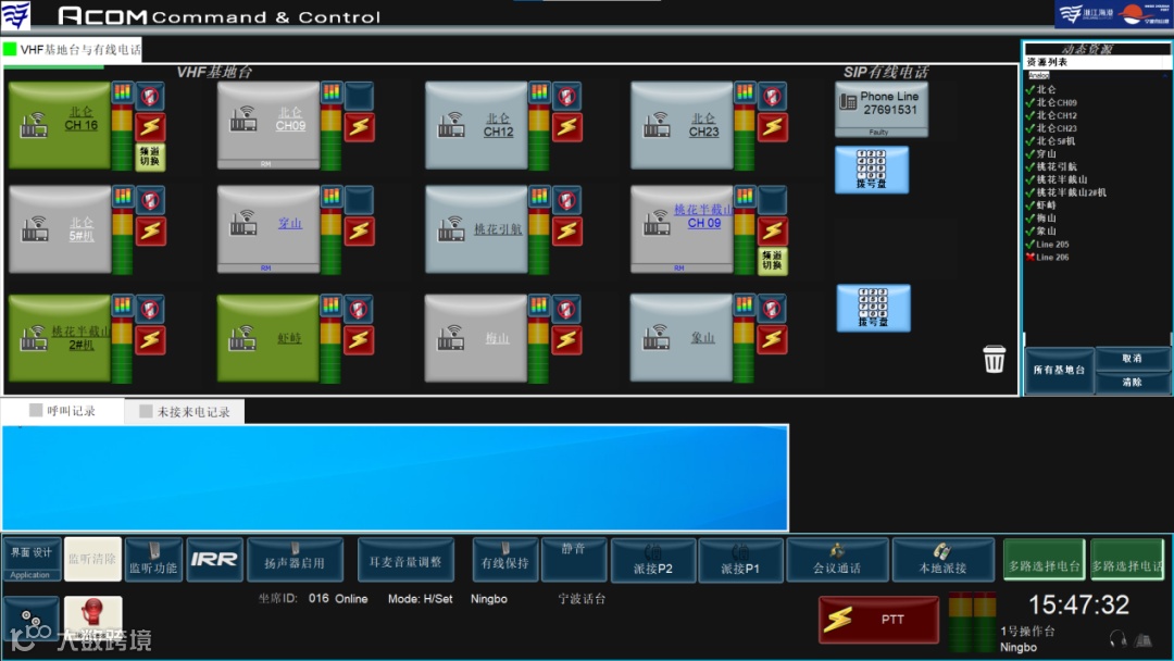 VHF指挥系统的信号可覆盖宁波舟山港全港的甚高频通信资源,从地处镇海港区的轮司生产调度中心发出,最远可达50多公里外的象山海域。进入信号覆盖范围内的所有拖轮,均能实时接收调度指令,无需再经调度分中心层层转达。调度员可依托系统实现“一键点击、语音对讲”,指令秒级触达目标拖轮,并同步传送至高频覆盖区域内的所有船舶,实现任务响应时间从过去的“分钟级”压缩至“秒级”。