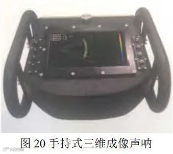 图20为苏州桑泰自主研制的一款便携式高分辨率水下三维成像设备,其开角范围为48°×48°,距离分辨率可达3cm,具有体积小、重量轻、低功耗等特性,可由潜水员在水中直接操作,通过对目标的视角切换、立体观察,使目标搜索和定位更加简单直观,可满足潜水员手持或者搭载ROV、UUV等平台使用。