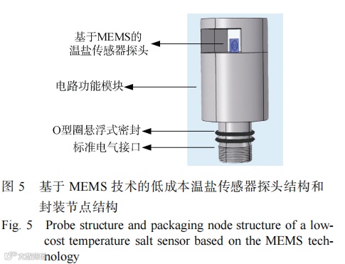 本文中采用铂电阻测温、四电极探头测量电导率的方法, 应用 MEMS 技术研制新型温盐传感器探头, 可在一块基板上一次成型 100 余个温盐传感器探头, 且一致性好, 减少了后续对传感器的标定和校准环节, 大大降低了制造和校准检测成本。