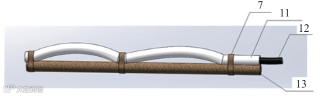 注:7为数据缆固定点;11为套管;12为数据缆;13为Kevlar缆。