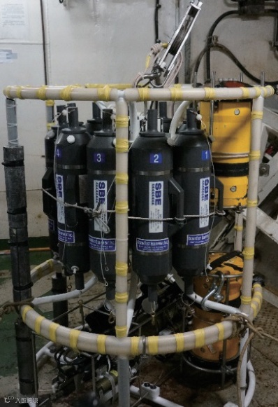 ⑵CTD数据缆通过框架上的立杆连接到横杆数据缆固定点,富余的数据缆在实际中会缠绕在