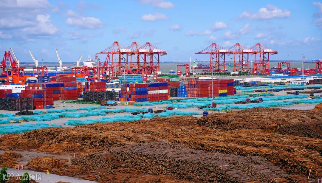 “你看,那边是‘钢铁’,这边是‘森林’,可不就是‘钢铁森林’嘛!”沿着太仓国际商务部经理王利民手指的方向看去:靠近江岸的场地,集装箱、钢材以及风电、新能源汽车、储能柜等高端装备整齐码放,闪烁着金属光泽;另一侧则是“森林密布”,成堆的木材铺满了场地,各式装卸设备在其间穿梭往来。