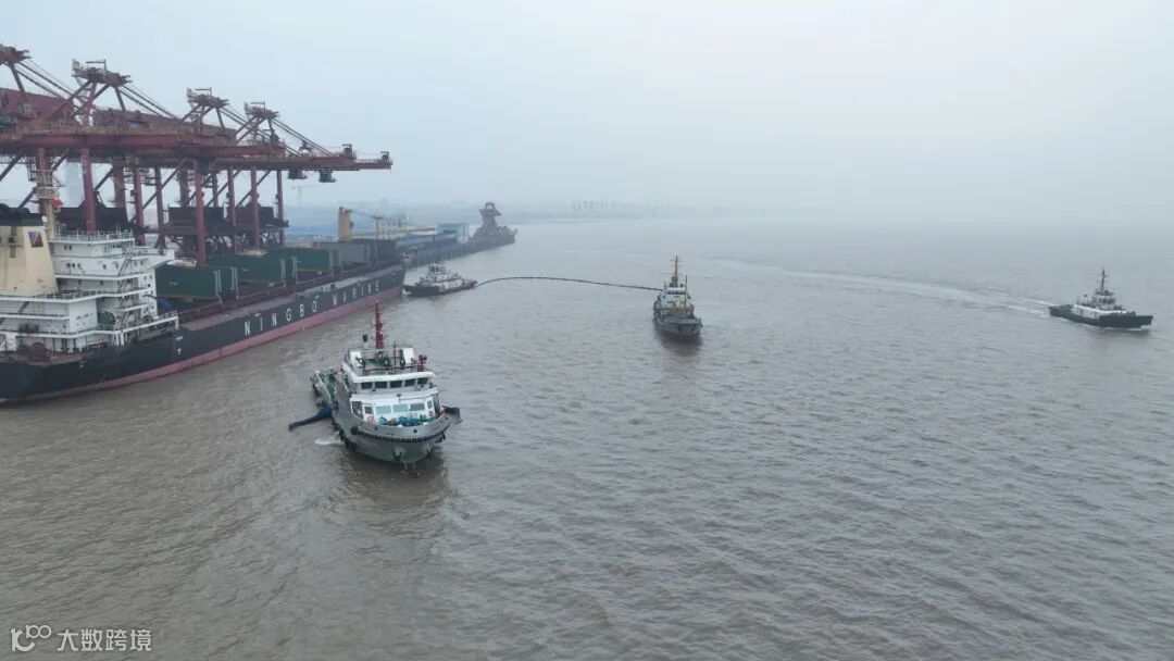 4月22日下午,2025年宁波港域联防体镇海片区船舶燃料油泄漏应急综合演练在镇海港区21号泊位前沿水域举行,这是宁波舟山港今年开展的首次联防体应急综合演练。