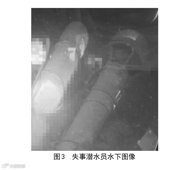 2017 年 9 月,河北唐山潘家口水库,GUE 两名潜水员在水下长城探索项目中失联。事故12天后,国产型江豚水下机器人(ROV)成功在水下60余m处找到两名失联潜水员。水下机器人搜索路线如图2所示,失事潜水员水下图像如图3所示。