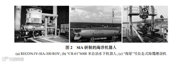 1990 年, “RECON-IV-300-SIA”首次销往国际市场, 我国第一次有了可以参与国际招标竞争的水下机器人产品. 此后, 多次在国际招标中中标并在我国南海石油钻井平台上服务, 同时为国内有关部门提供了 20 多套各种类型的遥控水下机器人系统, 成为国内唯一向国内外市场提供海洋机器人产品并提供各种技术支持和水下工程服务的单位. 目前, 沈阳自动化研究所不仅可为用户定制潜深 1000 米以浅的各类遥控水下机器人产品, 还能提供水下灯、云台、多种类型水密接插件、水下伺服机械手、开关机械手、水下作业工具(如清洗、切割、更换牺牲阳极、回收大型沉物夹持器)、人机交互设备总成、具有防摆止荡功能的大型甲板成套布放与回收设备等。