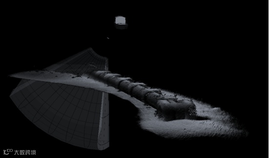 在海底管线的调查工作前,首先需要对其进行探测。目前,常见的探测方法主要有人工潜水探摸法、侧扫声呐探测法和浅地层剖面仪探测法等。只是,以上这三类探测方法均有一定的局限性:人工潜水探摸法有较大的安全隐患,且成本昂贵,检测结果受主观因素干扰大;侧扫声呐探测法难以直观、准确地定位管线的位置信息;浅地层剖面仪探测法因声波不能穿透金属材质的管壁而无法反映出海底管线的内部状态。水下三维声呐是近些年出现的新方法,它通过构建目标物的三维点云数据模型来反映目标物的表面现状,再结合数据处理软件可获取管线裸露悬空段的准确位置、裸露悬空长度、裸露悬空高度等特征,能够实时、高效、清晰、精准地生成水下裸露悬空管线的三维图像,从而为后续的管线保护施工和修缮维护提供较为可靠的数据支撑。