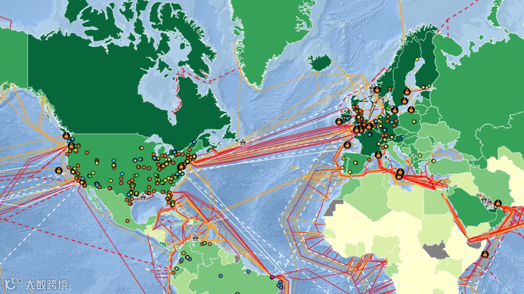 全球超过97%的互联网流量依赖海底电缆,可以说海底电缆关乎几乎每一个人的日常生活。根据Tele Geography统计数据,全球海底电缆上岸站点密集区域共有五处,即美国东海岸地区、欧洲地区、阿拉伯海地区、东南亚地区和中日韩地区,并且目前美国控制的区域较多。
