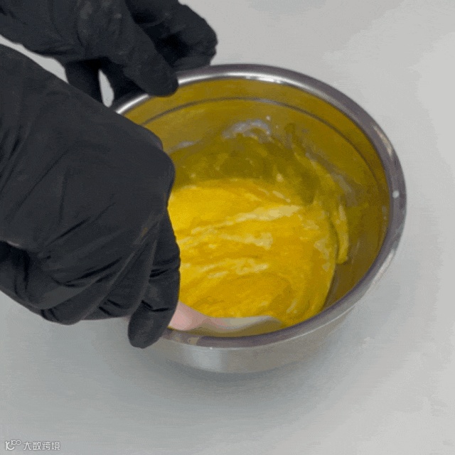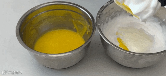 首先混合玉米油及牛奶,搅拌至乳化,再筛入低筋面粉,搅拌至没有干粉,再加蛋黄搅拌均匀。