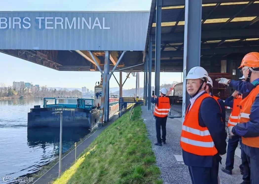 巴塞尔港位于瑞士、德国、法国三国交界处,坐拥莱茵河航运起点,是瑞士通往北海(经鹿特丹港)的唯一国际水路门户,是瑞士能源(石油、煤炭)、化工原料、工业品运输的重要枢纽。朱苗一行于当地时间3月7日赴巴塞尔港考察。巴塞尔港Birsterminal码头主席罗尔夫·福格特、巴塞尔港务局管理代表罗兰·布莱辛格等向朱苗一行详细介绍了巴塞尔港的运营情况,并陪同现场观摩码头、仓库配送中心、铁路场站作业情况。双方还重点就多式联运模式与特种货物管理经验进行交流,探讨内河港服务腹地企业,协同海港发展的可行路径。