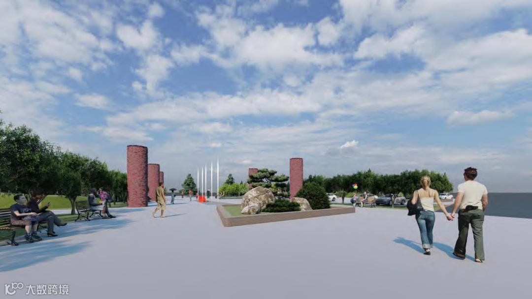 建筑存在于景观之中,建筑的形态和体量等都影响景观的表达。润丰海洋牧场旨在打造具有文化内涵的综合型海洋牧场,应在细节上充分刻画。例如:在建筑外墙融入渔文化雕刻图案,打造兼具江南渔村韵味和北方粗狂气质的独特建筑;在亭廊装饰中运用体现渔文化和海洋文化的工艺品;在景观基础设施中以“渔”符号为点缀,地面铺装的纹理图案拼接为鱼的造型。