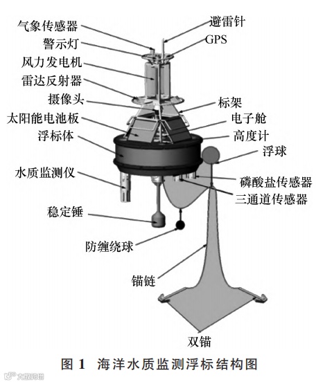 西方发达国家的海洋水质监测浮标起步较早, 始于 20 世纪 20 年代, 至今已经取得大量的成果, 并且制定了相应的海洋环境监测规范和标准, 在 各沿海国家实现了长期业务化运行。我国的海洋水质监测浮标虽说起步较晚, 但是经过多年的发展, 也取得了长 足的 进步 , 已经 形 成 了直 径 为1.5 m、 3 m、 6 m、 10 m 等一系列产品, 也逐步实 现了业务化运行 [5]。目前, 我国的海洋水质监测浮标功能较为完善, 除了搭载水质传感器对重要水质参数进行监测外, 还可以搭载一些监测油类、 气象、 海流等其他参数传感器 [6], 能够对海洋水质及其他环境参数进行全面的实时在线监测。浮标体所用的材料防生物、 防腐蚀性能较好;海洋水质监测浮标还可以搭载一些雷达反射器等安全 防护系统;根据需要有些浮标还可以搭载摄像监 控系统, 对整个浮标系统进行实时监控。