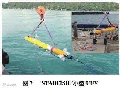 新加坡国立大学声学研究室研发了数字式细线拖曳阵声呐系统(digital thin line array,DTLA)[21],如图6所示。DTLA拥有12个声学通道,直径仅为15mm。DTLA的轻便特性使其十分适合搭载于小型UUV平台上。该研究室利用自研的“STAR-FISH”小型UUV搭载DTLA,如图7所示,在外场环境下实现了目标的自主探测,并同时实现了离线的目标跟踪[22]。