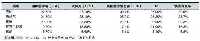 油气在能源结构中仍占主导地位,天然气处在发展黄金期。多家机构和石油公司预测,在未来较长一段时间内,油气在世界一次能源消费结构中仍然占据主导地位。尽管石油在世界一次能源消费中的比例会逐渐下降,但是石油消费的绝对量将继续增长,它在全球一次能源中的霸主地位短期内难以动摇。天然气作为较清洁的能源,正在进入快速发展阶段,天然气在全球一次能源消费中的比例将进一步提高。