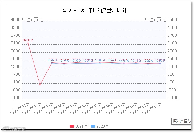 2021年国内生产石油19897.6万吨,对外依存度超过73%,净进口5.379亿吨;天然气近2100亿方。