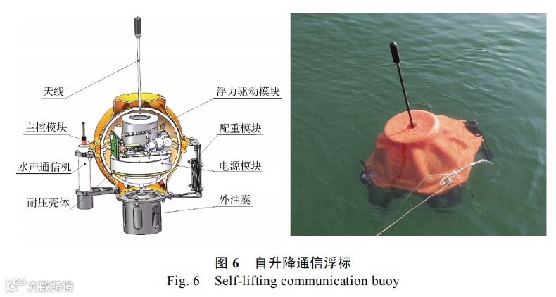 主浮体包括固体浮力材料、结构框架、电池舱、电控舱及水声通信机等,为水下观测系统提供正浮力及能源,同时承担系统综合控制及数据传输任务。