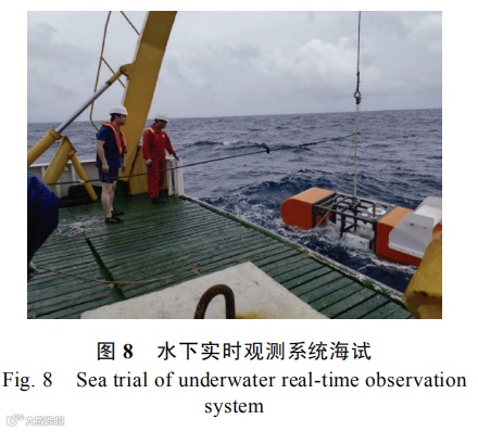 2019 年 9 月,搭载青岛海洋科学与技术试点国家实验室“问海计划”航次,在南海开展了水下观测数据实时传输功能验证试验。试验设备包括 2套水下实时观测系统:1)基于水下绞车的水下实时观测系统;2)基于自升降通信浮标的水下实时观测系统。2 套系统布放水深均超过 2 800 m。基于水下绞车的水下实时观测系统完成了水下绞车水下运行测试和水下通信电缆数据传输链路测试。基于自升降通信浮标的水下实时观测系统完成了自升降通信浮标水下运行测试和水下声学通信链路测试。两系统合计完成 50 余个剖面运动后成功回收。通过海上试验,初步验证了 2 套水下实时观测系统的观测数据实时传输功能。
