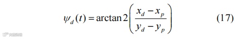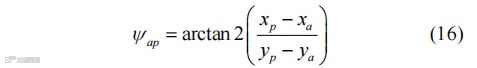 其中,d 表示期望的 USV 和 UUV 相对距离,l 表示视线长度。航向角计算公式如式(14)所示。