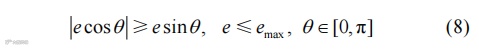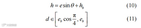 式中:e 为 USV 端问答器至 UUV 端应答器的相对距离,为 USV 与 UUV 间的距离矢量和 USV 端问答器水平面所构成的线面角,emax为 USBL 的最大有效通信距离。应答器与问答器的相对距离和角度都是实时可测,并假定 USBL 的问答器距水面深度为hb 。从式(8)可以得到,USV 与 UUV 的有效空间关系: